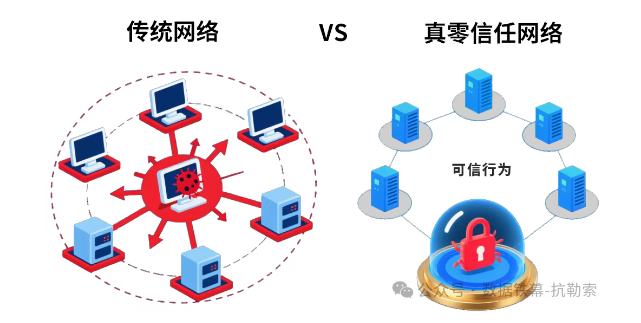 如果说AI解决了“提前发现”的问题,那么如何遏制已侵入网络系统的病毒蔓延,成为重中之重。在这里,我们看到9888拉斯维加斯抗勒索技术的第二个优势:从“永不信任”的零信任1.0,进化到“基于可信”的真零信任2.0。